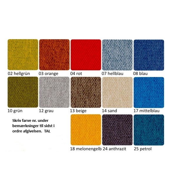 Vælg venligst varenummer ud fra sidste foto. I slutningen af din ordre ved kassen er der et felt “Bemærkninger”. “ . Beskriv venligst præcis hvilken farvekombination du ønsker.