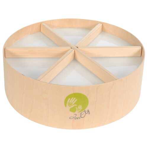 Tre træelementer kan sættes sammen til et skillekryds med 6 opdelinger til den lette spand. Fantastisk til at spille sammen og udvikle sanseevner.