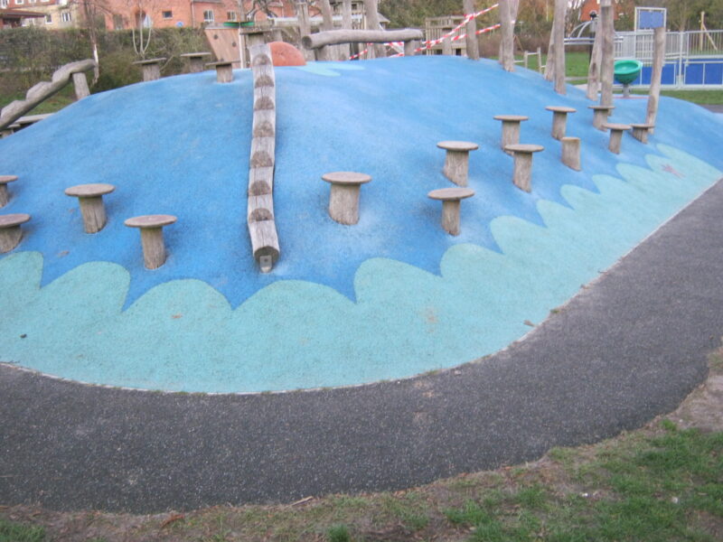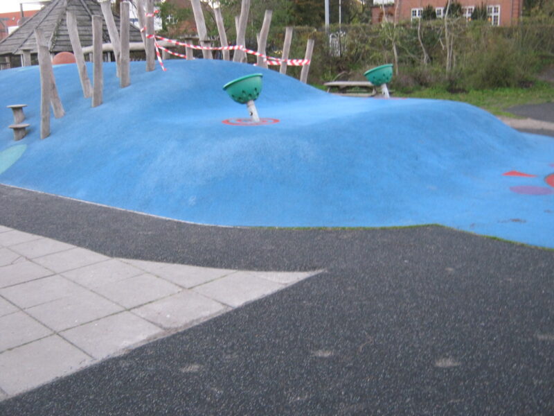 Det nyeste inden for faldunderlag ved legepladser. Vores gummiunderlag indeholder en stor mængde genbrugsgummi, så det er samtidig en god løsning, når vi også vil tage hensyn tilmiljøet. Prisen er pr. m2. Certifikater – herunder TUV, sliktest, kørestol, brand og dræn – og overholder de højeste krav inden for sikkerhed og faldhøjder i henhold til DS/EN1176 og DS/EN1177.