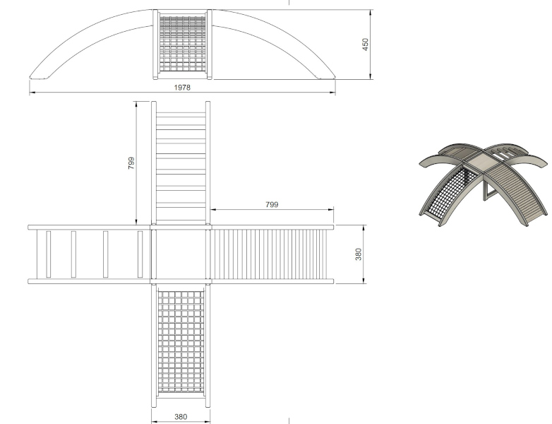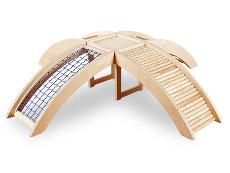 Klatre over nettet og nå den sikre centrale platform. Denne harmonisk designede klatre- og legestruktur er en vidunderlig tilføjelse, især for små børn. Opstigning er også mulig via hønsestigen, trin eller gymnastikstigen. Den lave faldhøjde på 45 cm betyder, at faldsikring ikke er nødvendig. Vi anbefaler dog altid at bruge gymnastikmåtter eller placere en stor legemåtte nedenunder. Voksenopsyn er ikke nødvendigt under brug, men vi anbefaler stadig at holde øje med børnene.