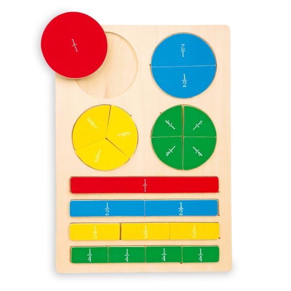 Spændende divideresæt med rektangler og cirkler som har størrelserne: 1/1 til 1/4.