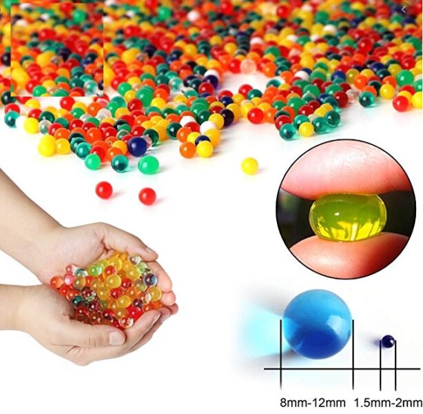 Når perlerne ligges i vand, vokser de sig 100 gange større i vægt end sin oprindelige vægt, og vokser fra 2 mm til 14-17 mm. Derfor er disse perler velegnet til at træne børnenes finmotorik ved f.eks. at sortere perlerne i farveorden eller i bunker af et bestemt antal.